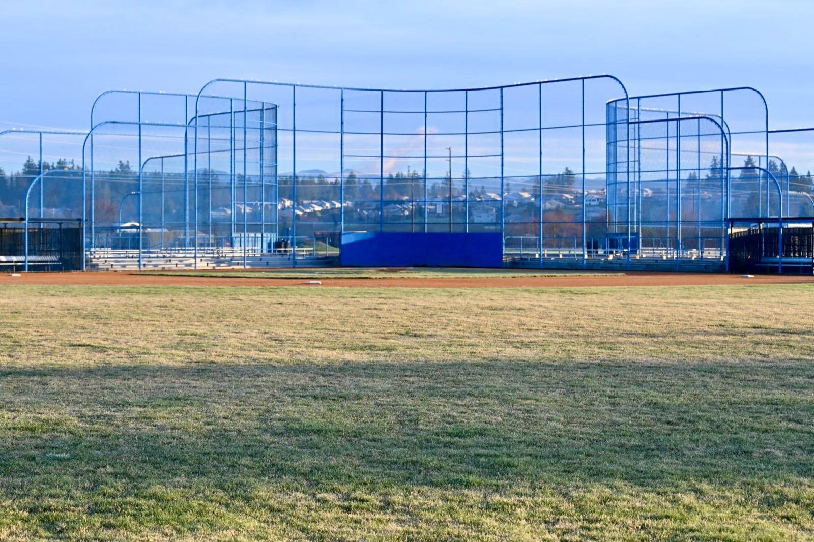 This versatile grass-infield baseball and softball field is great for games, practices, and tournaments. With universal base distances of 60’, 70’, and 90’, a removable mound, and a deep 385-ft outfield, it accommodates multiple age groups and play styles. A spacious layout and park setting make it a favorite spot for teams and families.